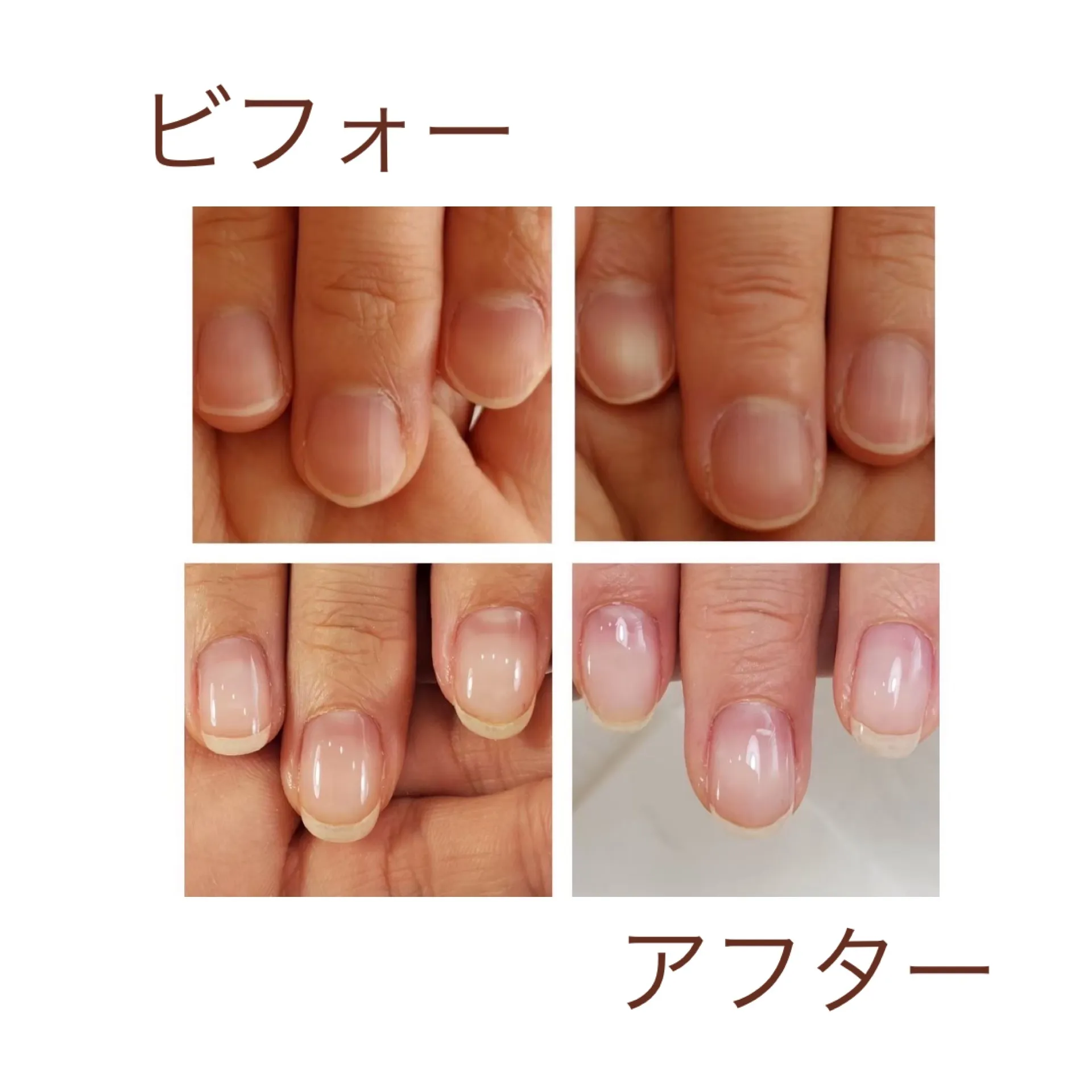 自爪のお悩みありませんか?丸かったり、深爪だったり、噛み癖があったり...当サロンは自爪育成に特化したサロンですので、お爪のピンクの部分を伸ばしてお爪の健康を考えながら施術をしております。施術1、2回で綺麗になるといった魔法のようなことではありません。ホームケアを頑張って頂き、サロンで施術をしてお爪の良い状態へ導く〜これが自爪育成になります。高品質の天然アロマオイルも1本プレゼントさせて頂きますので、共に頑張って育てていきましょう。