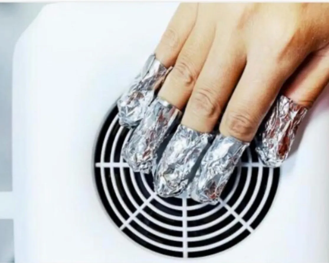 通常ネイルサロンのオフは【アセトン】という 溶剤をコットンに染み込ませ、アルミホイルを巻いてジェルネイルを溶かし、浮かした除去していました。
